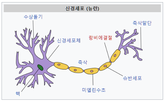 퍼셉트론의 구조를 보기 전, 먼저 뉴런의 구조를 본다.