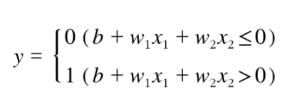 식을 해석해 보면 퍼셉트론은 입력 신호에 가중치를 곱한 값과 편향을 합하여,