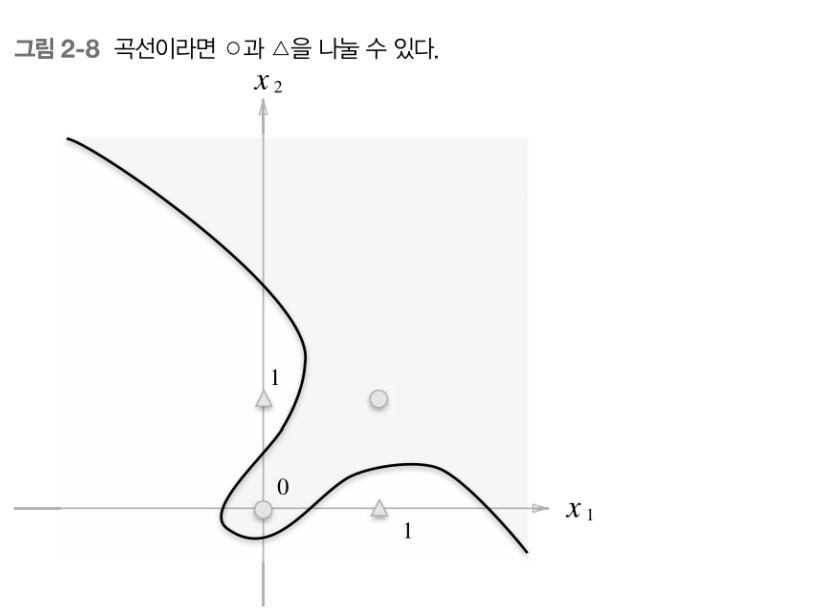 그렇다면 곡선은 퍼셉트론으로 어떻게 구현할 수 있을까?