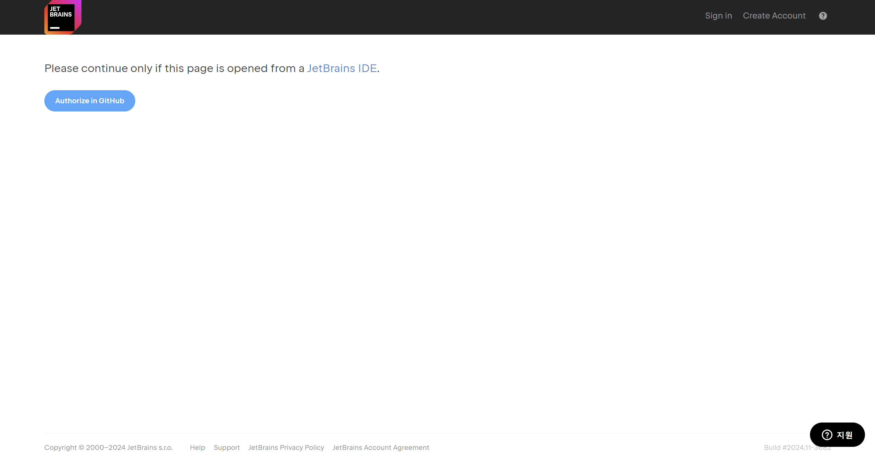 GitHub에 로그인해야 계속 진행할 수 있다는 경고문인데 파란색 Log In via GitHub... 버튼을 눌러준다.