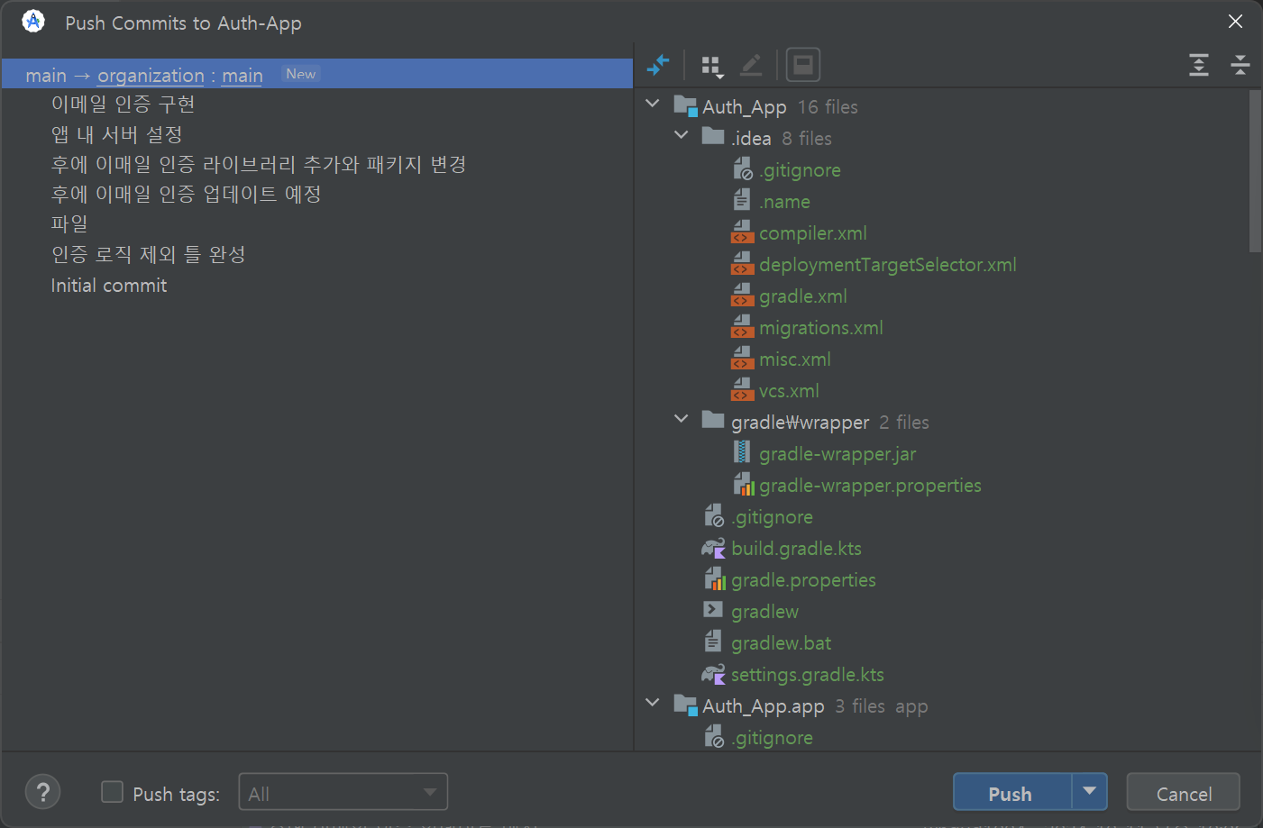 push 버튼을 누른다면 push과 완료된다.