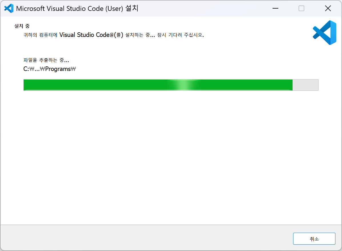 6. 설치가 시작되고 프로그래스 바가 차길 기다린다.
