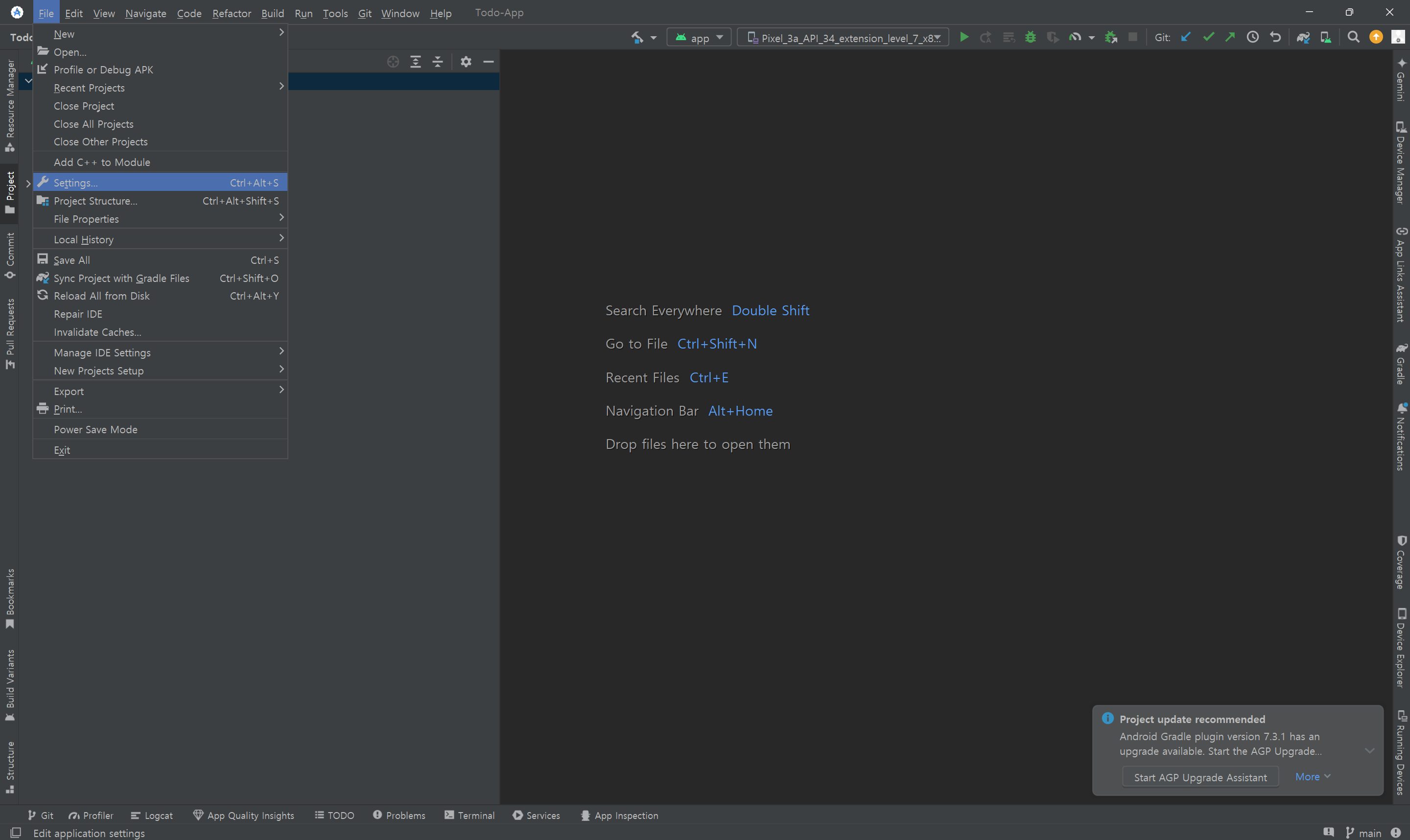 VCS를 설정할 수 있는 설정으로 들어가 보자. File에서 Setting으로 들어가자.