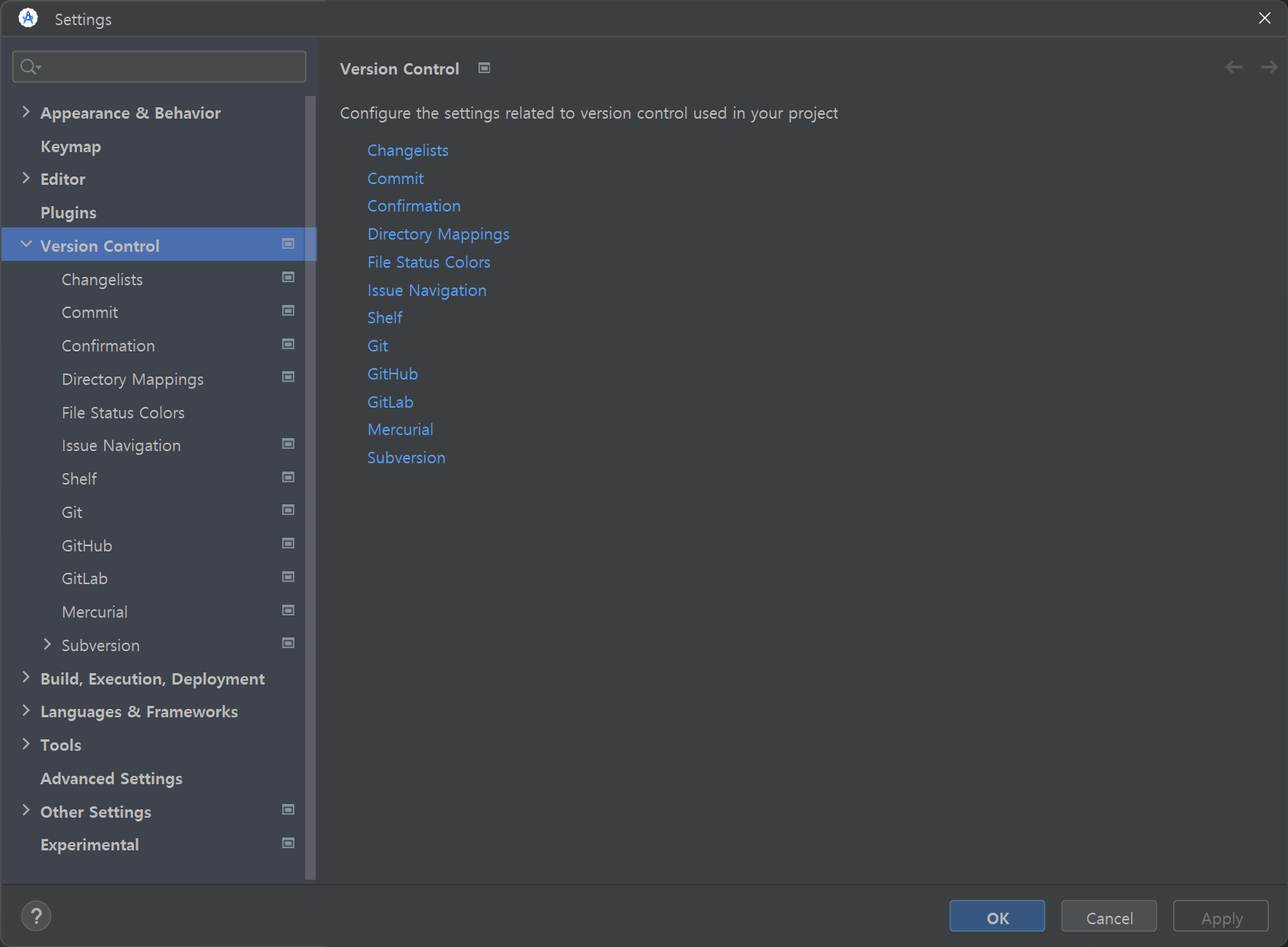 다음 글에선 위에서 설명한 바와 같이 Version Control Settings에 대해 알아보도록 하겠다.
