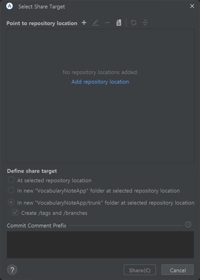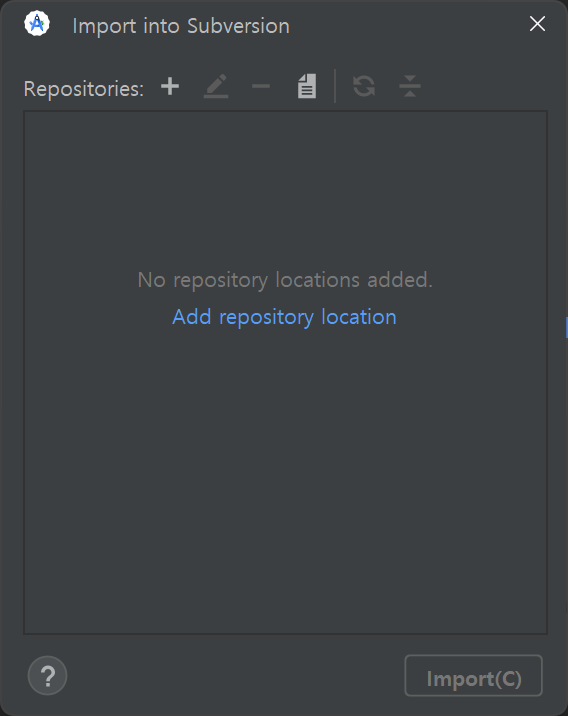 - 현재 프로젝트를 Subversion(SVN) 저장소에 추가한다.