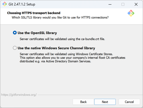 → 추천: Git Bash를 주로 사용하는 경우 선택. - Check daily for Git for Windows updates