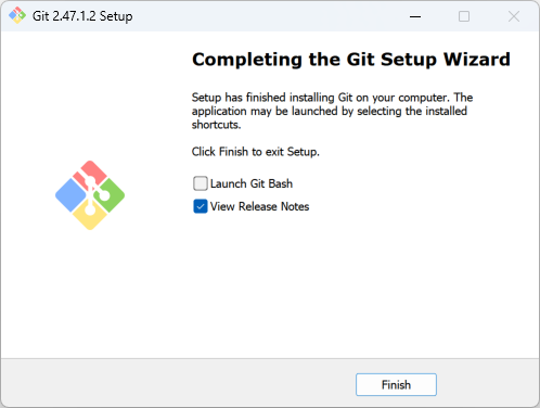 Git 설치 마법사를 완료했다.