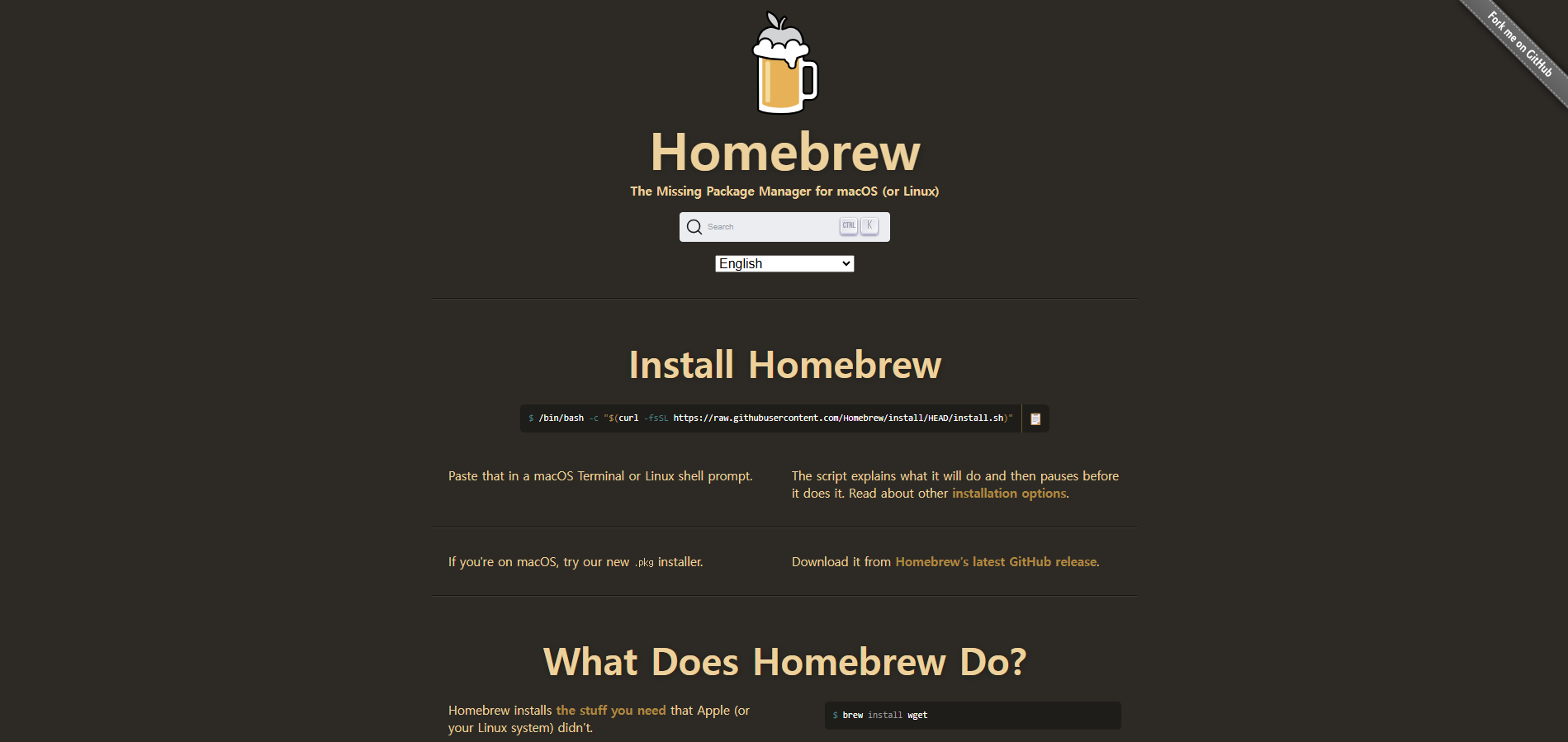 Homebrew 사이트로 이동해 Install Homebrew 문구 아래에 있는 명령어를 복사해 실행한다.