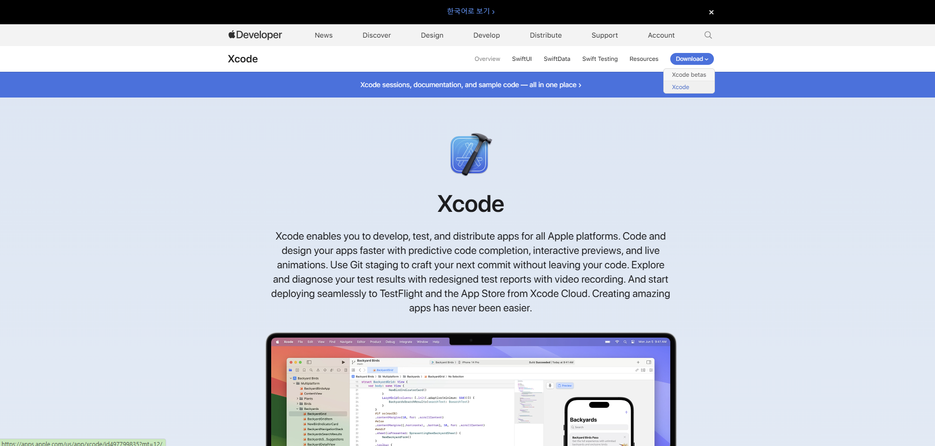 Xcode 사이트에 들어간다.
