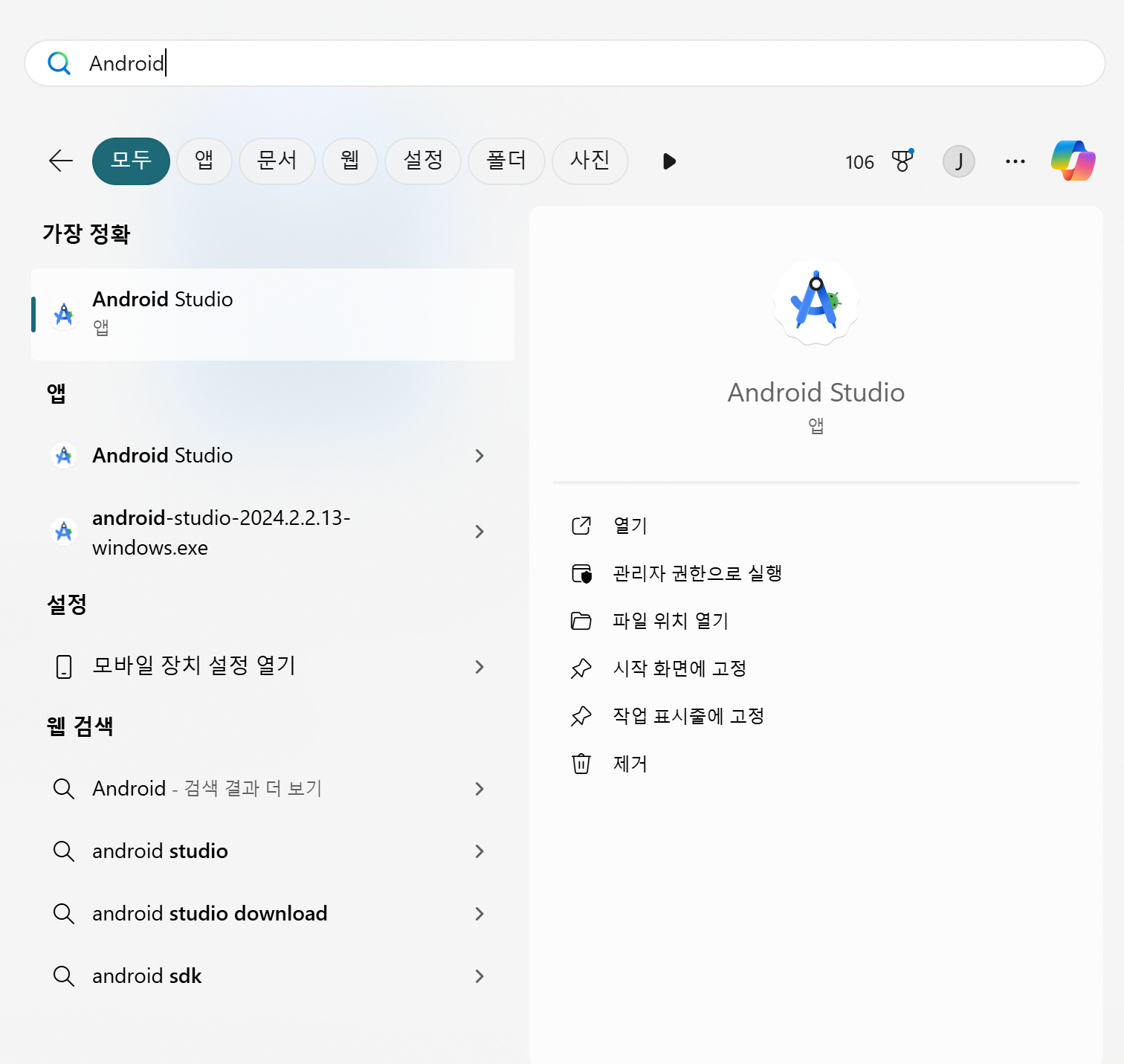 설치가 완료되었다면 탐색기에 검색했을 때 위처럼 뜰 것이다.